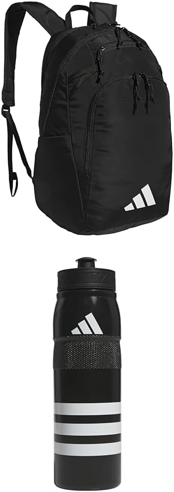 adidas Defender Team Backpack 33L 750 ml 28 oz Stadium Refillable Plastic Sport Water Bottle, Black BlackWhiteBlack, One Size