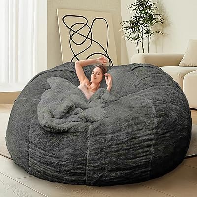 Bean Bag Chair for Adults Kids Without Filling Comfy Fluffy Giant Round Beanbag Lazy Sofa Cover for Reading Chair Floor Chair, 6FT, Dark Grey
